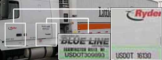 In the example below, Blue Line has placed its name and DOT number on the vehicle and is in this instance the motor carrier that would be recorded if this vehicle were involved in a reportable crash.